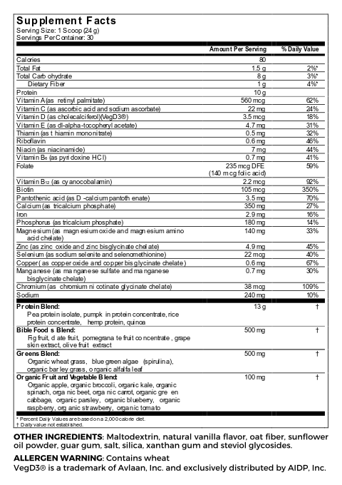 This delicious, doctor-recommended meal replacement shake is packed with 25+ different superfoods and 10 grams of clean plant-based proteins. It includes key ingredients such as organic olive, fig, dates, and pomegranate fruits that provide natural healing benefits, while assisting you with weight loss, increased energy, heart health, and a strengthened immune system!